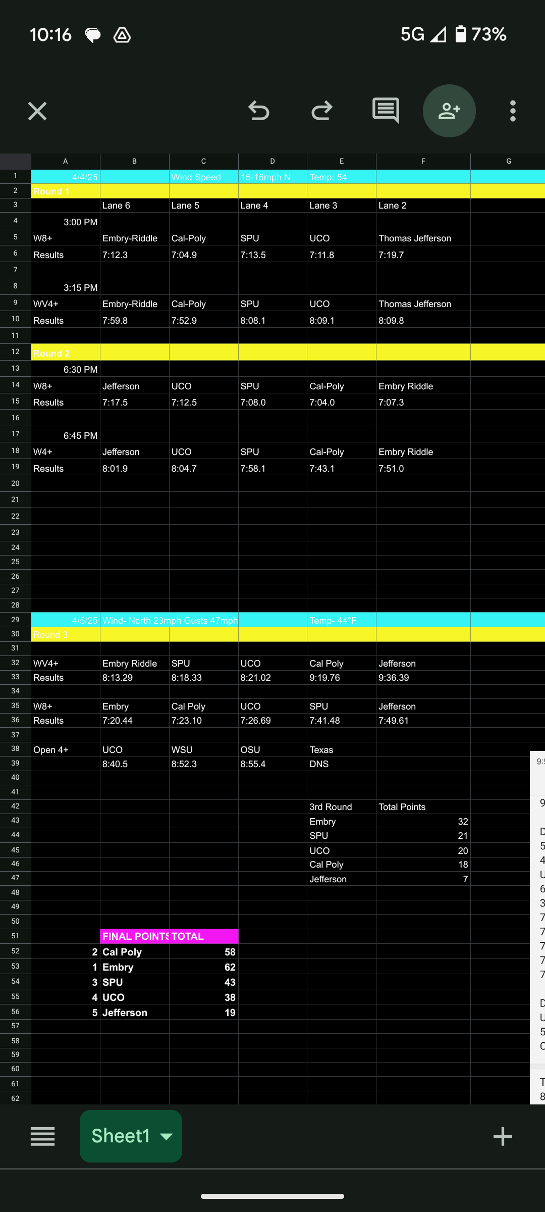 2024-25 Women's Rowing Schedule